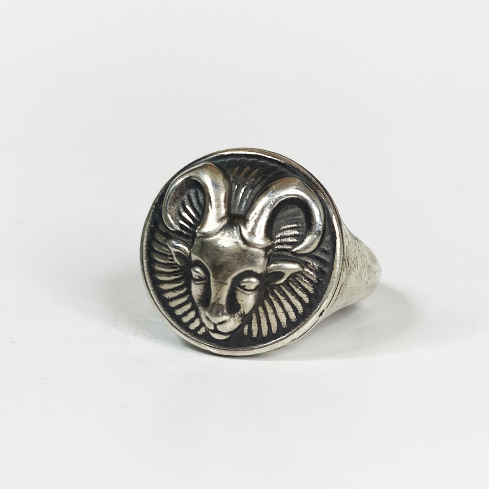 Son médaillon circulaire évoque la perfection des astres, tandis que le bélier sculpté symbolise la détermination inflexible de celui qui porte ce bijou.